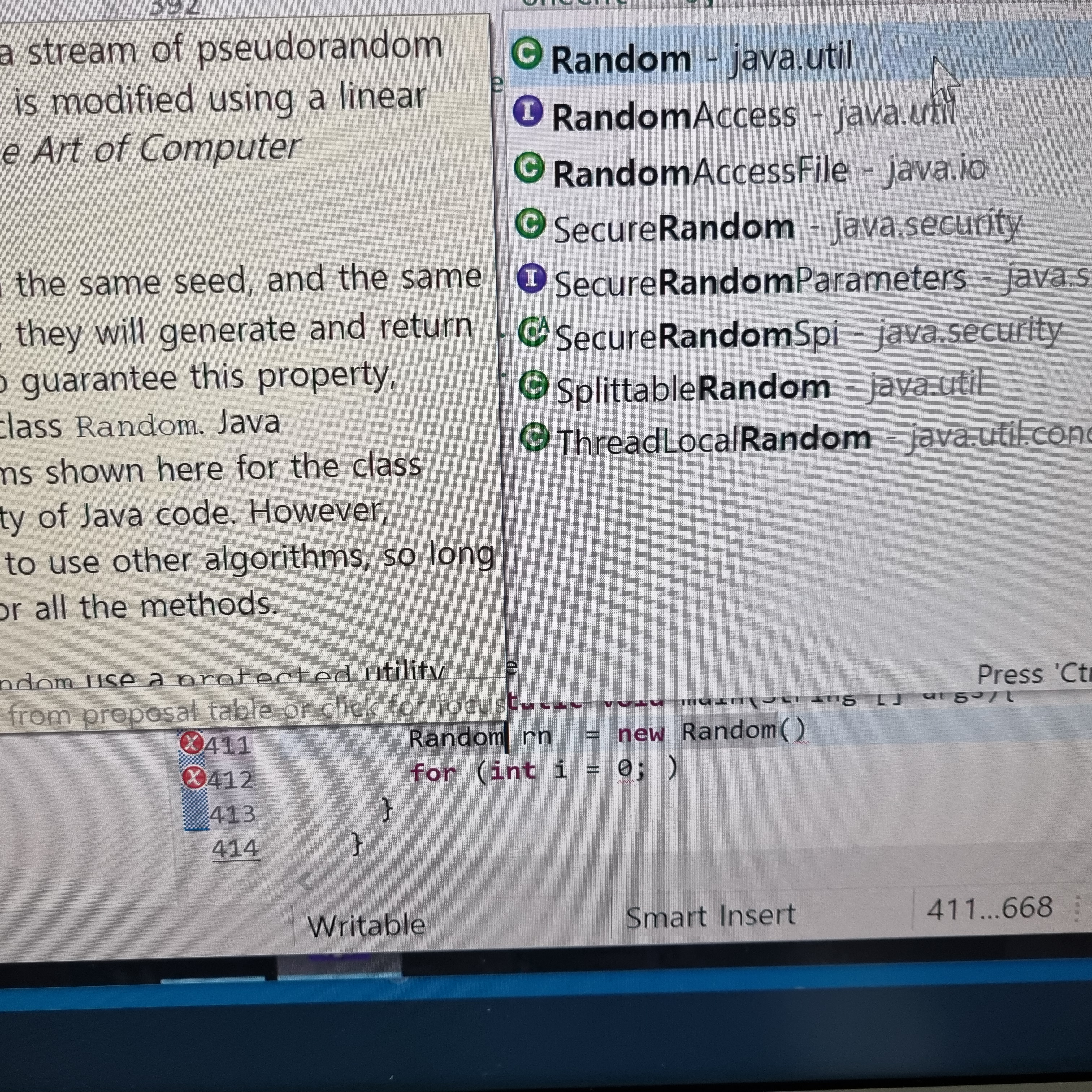 코드 입력창에 Random만 입력한 후에 ctrl + space bar를 눌러주시면