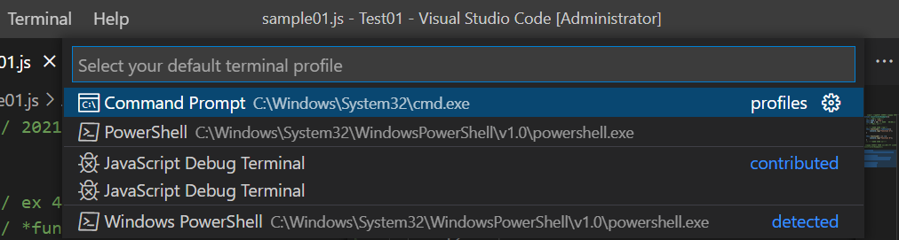 ์์ธ์ ์๋์ ๊ฐ์ด ๊ธฐ๋ณธ ํฐ๋ฏธ๋์ด powershell๋ก ์ค์ ๋์ด ์๊ธฐ ๋๋ฌธ์ ๋๋ค.