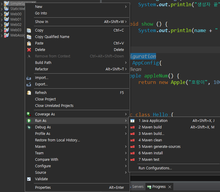 프로젝트에 마우스 우측 클릭 - Run As - Run Configurations 차례로 클릭