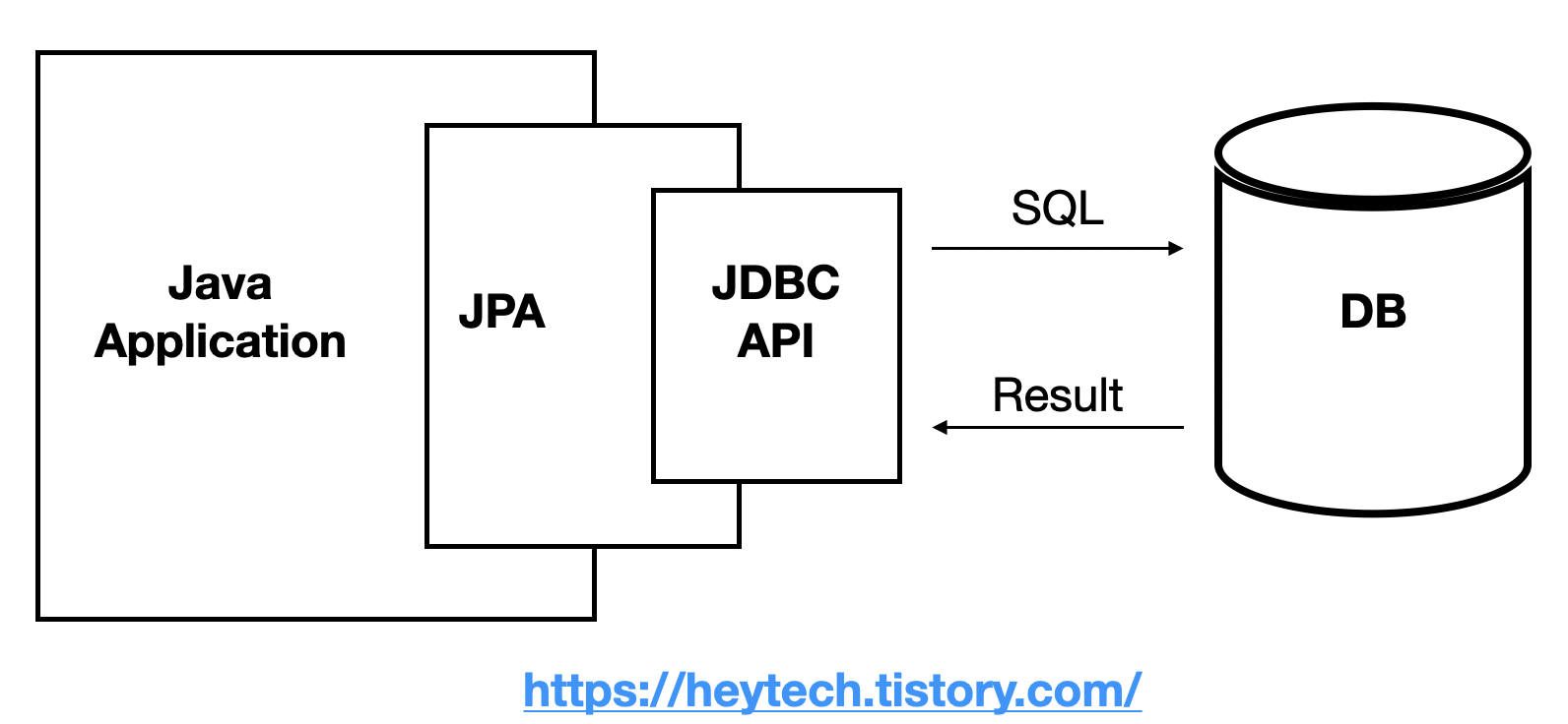 - JPA๋ Java Application๊ณผ JDBC ์ฌ์ด์์ ๋์(๊ทธ๋ฆผ 1 ์ฐธ๊ณ )