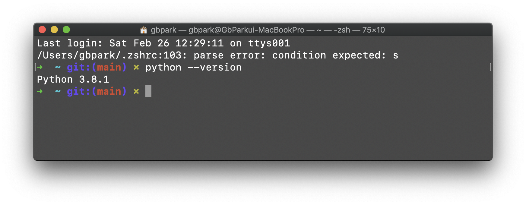 터미널을 새로 열어 파이썬 버전을 확인해 봅니다.
