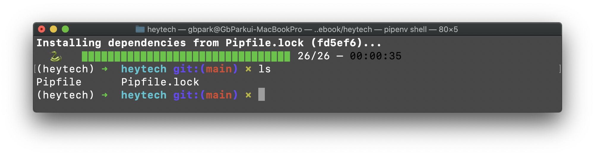 ์ผ๋ฐ์ ์ผ๋ก pipenv ํ๊ฒฝ์์๋ pipenv install ๋ช ๋ น์ด๋ก ํจํค์ง๋ฅผ ์ค์นํฉ๋๋ค.