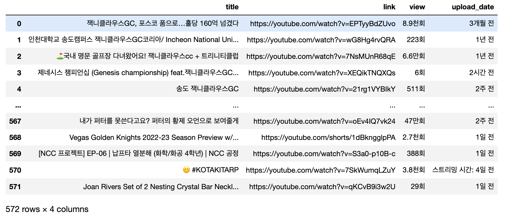 [Python] 유튜브 콘텐츠 크롤러 코드 Version 1.0.1 본문