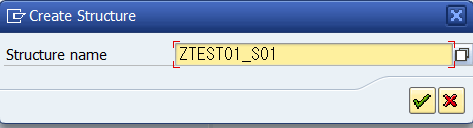 필드명에 .INCLUDE를 입력하고, Data Element에 생성했던 구조체 이름을 입력합니다.