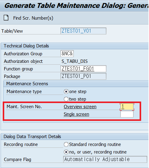 3. Table Maintenance Generator 속성 세팅