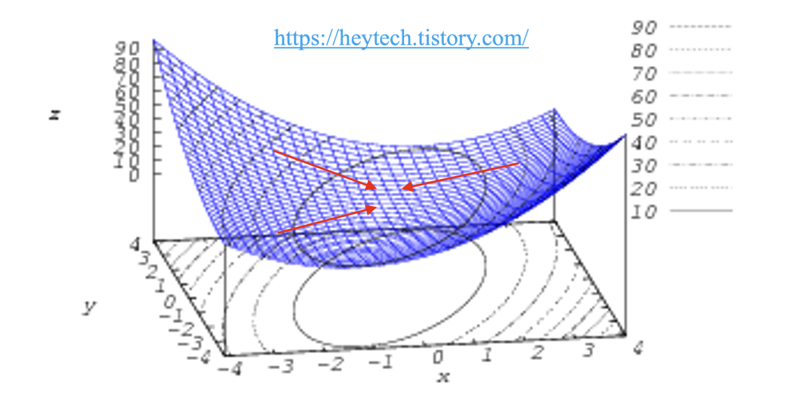 즉, \(Gradient(f)\)는 \(x\), \(y\)의 함수이자 모든 \(x\), \(y\)축에 대응되는 벡터를 생성할 수 있다는 것을 알 수 있습니다.