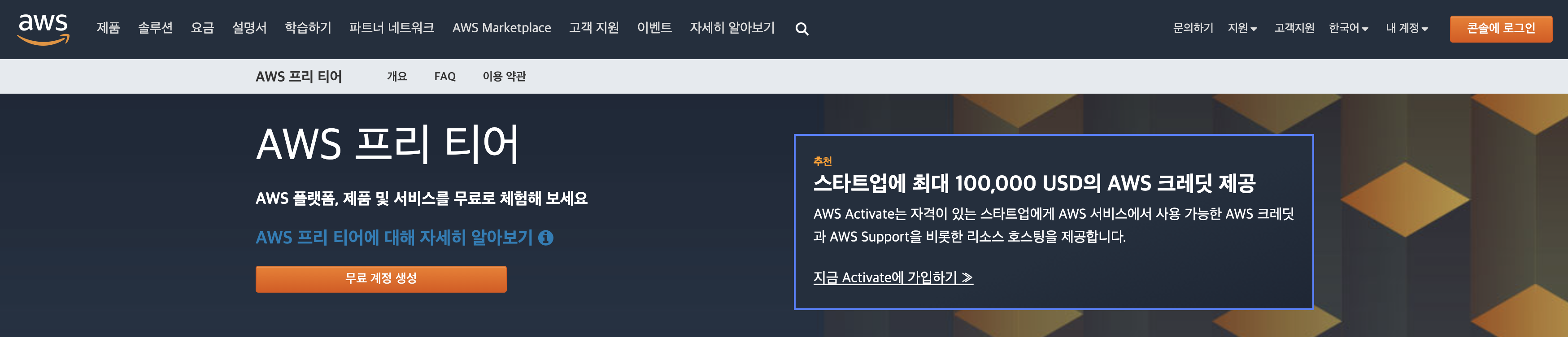 ๋จผ์ AWS ํํ์ด์ง์ ๋ฐฉ๋ฌธํ์ ์ ํ์๊ฐ์ ์ ํ์ ์ผ ํฉ๋๋ค. ์๋์ ๊ทธ๋ฆผ 3๊ณผ ๊ฐ์ด ์ต์ด ๊ฐ์ ํ ์ด๋ฉ์ผ ๊ณ์ ์ผ๋ก 1๋ ๊ฐ ๋ฌด๋ฃ ์ฒดํํ(a.k.a., ํ๋ฆฌ ํฐ์ด)์ ์ ๊ณตํฉ๋๋ค. ๋ฌผ๋ก ๋ฌด๋ฃ์ธ ๋งํผ ์ ์ฌ์ ์๋น์ค ๋ฌด๋ฃ๋ก ์ฌ์ฉ ๊ฐ๋ฅํฉ๋๋ค. ํ์๊ฐ์ ์ ํด์ธ๊ฒฐ์ ๊ฐ ๊ฐ๋ฅํ ์ ์ฉ์นด๋ ๋ฑ๋ก์ด ํ์์ ๋๋ค. ์ ํจํ ์ ์ฉ์นด๋์ธ์ง 100์์ ๊ฒฐ์ ํ๋ค๊ฐ ๊ณง๋ฐ๋ก ์น์ธ ์ทจ์๋๋ ์ ํจํ ์ ์ฉ์นด๋๋ฅผ ์ค๋นํด ์ฃผ์ธ์.