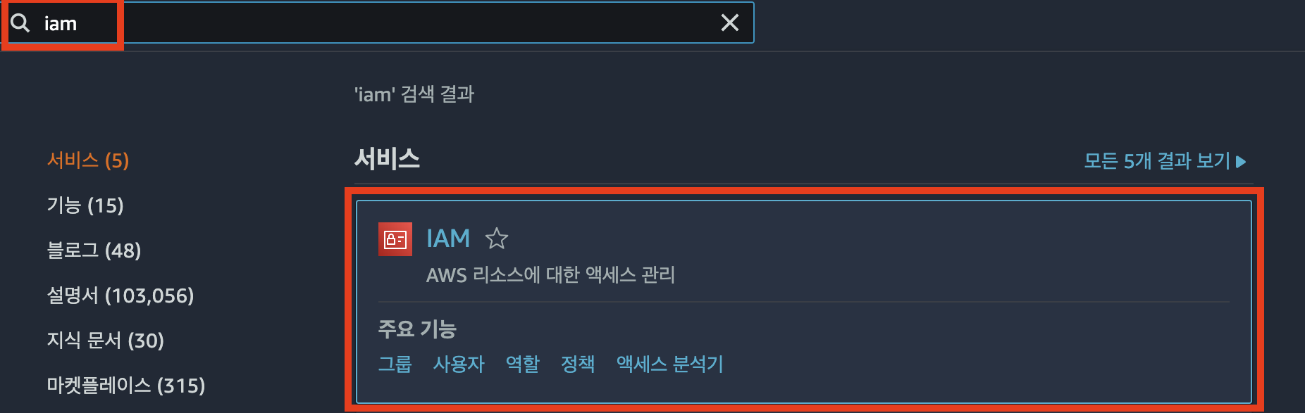 ๋จผ์ , AWS ์ฝ์ ์ฐฝ์ IAM์ ๊ฒ์ํ๊ณ ํด๋น ์๋น์ค๋ก ์ ๊ทผํฉ๋๋ค(๊ทธ๋ฆผ 2).