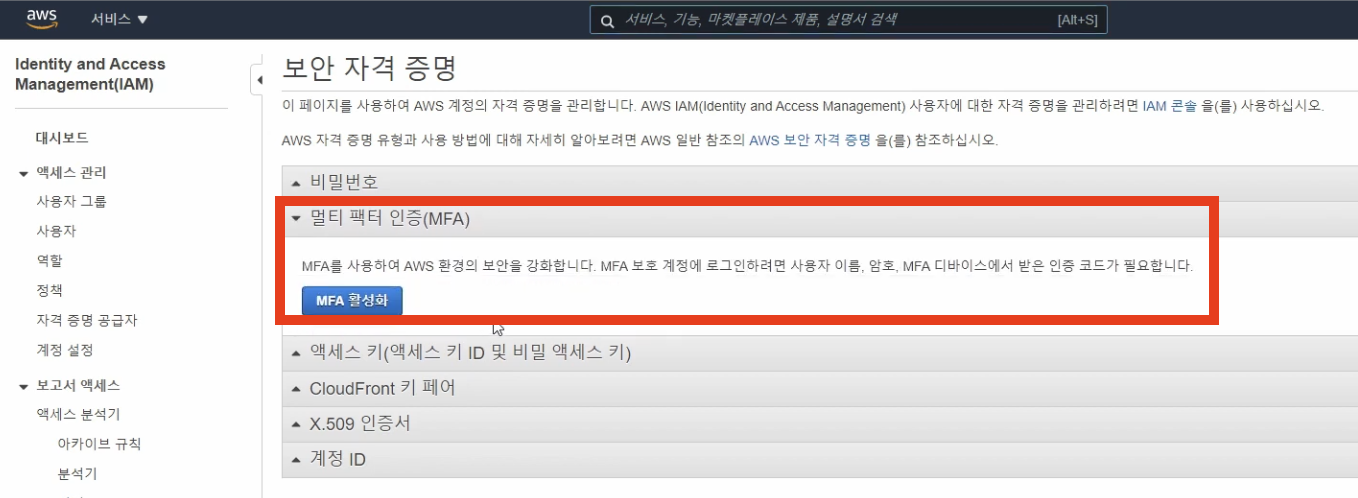 2. AWS MFA ํ์ฑํ