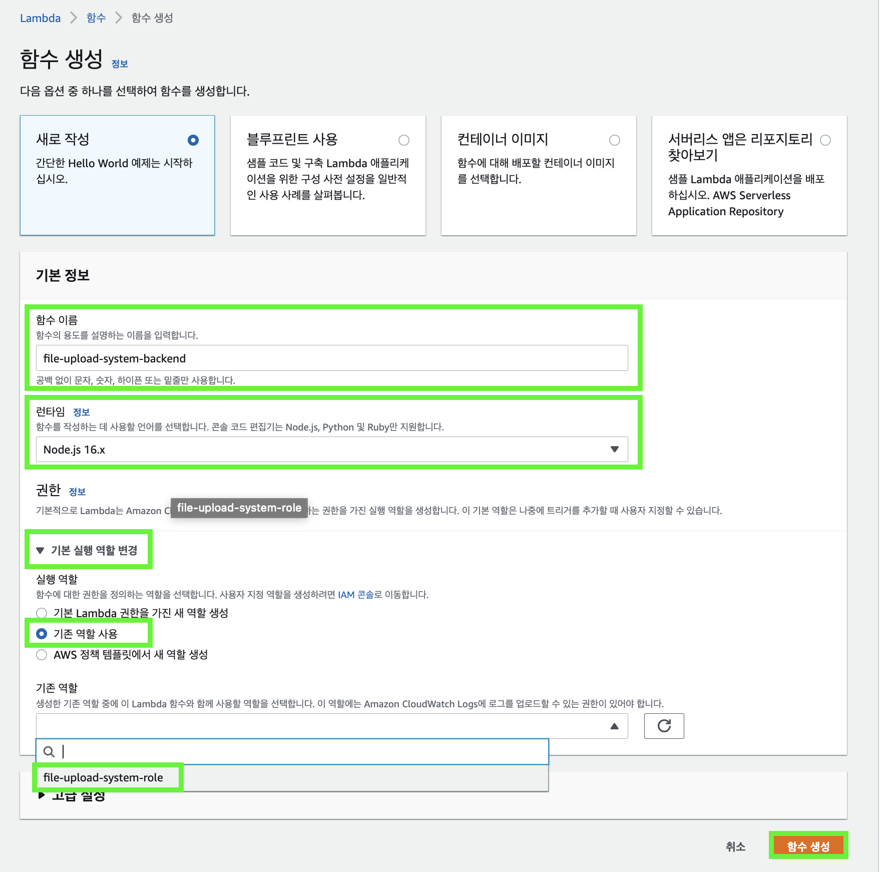 ํ์ผ ์ ๋ก๋ ์น ํ์ด์ง ๊ตฌ์ถ: (3) AWS Lambda ์์ฑ