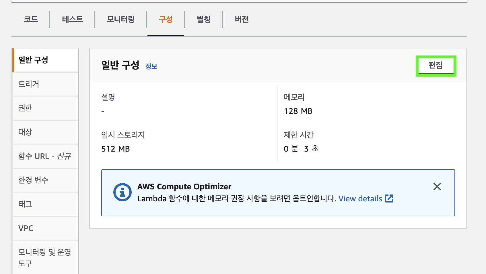 Lambda ํจ์๊ฐ ๋ง๋ค์ด์ก๋ค๋ฉด ์ด์ ๋ฉ๋ชจ๋ฆฌ ํฌ๊ธฐ์ ์ ํ ์๊ฐ์ ์ค์ ํฉ๋๋ค.