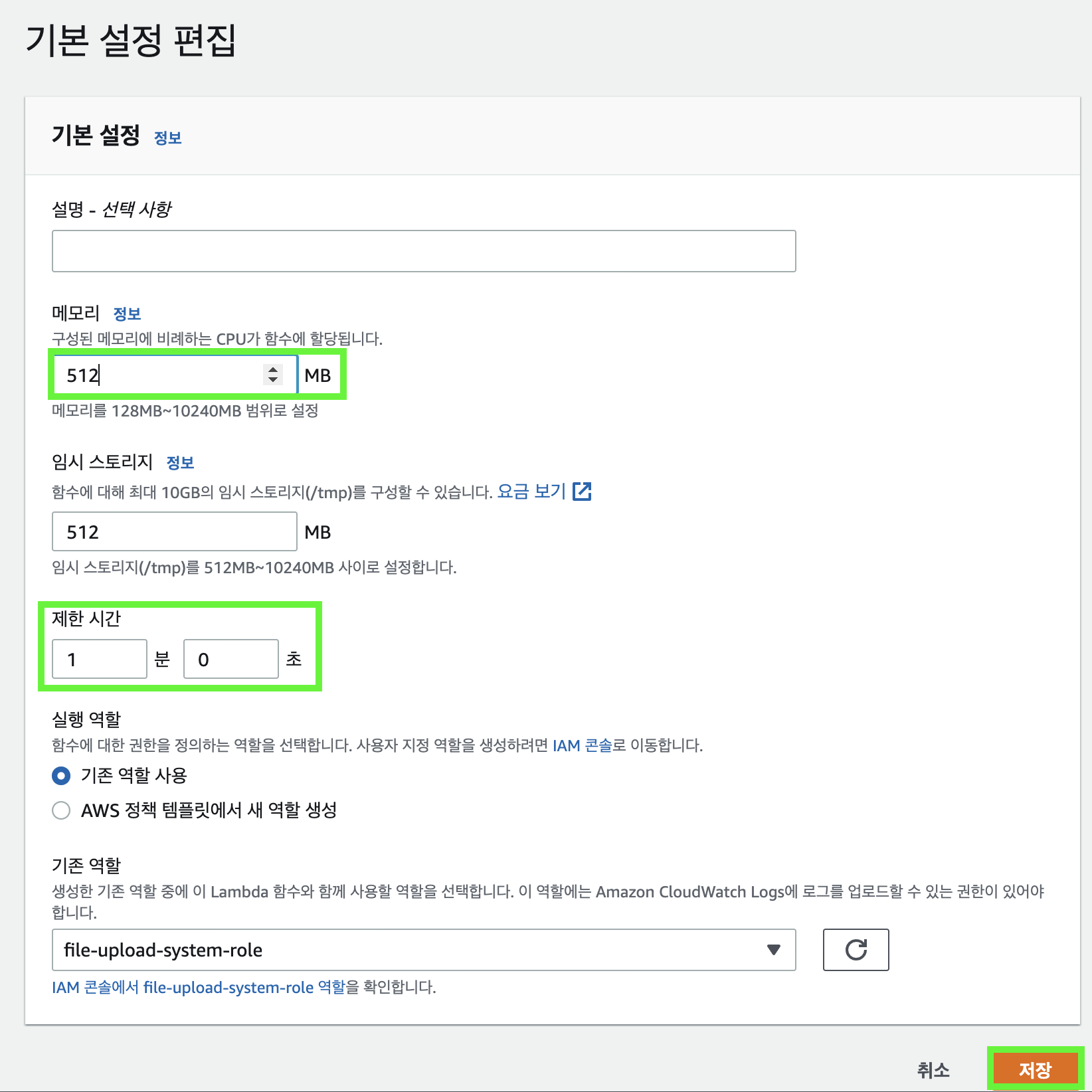 ํ์ผ ์ ๋ ฅ์ ๋ฐ๊ธฐ ์ํด ๋ฉ๋ชจ๋ฆฌ์ ์ ํ ์๊ฐ์ ๋๋ ค์ค๋๋ค. ์ ์ ๊ฒฝ์ฐ, ๋ฉ๋ชจ๋ฆฌ๋ 512MB, ์ ํ์๊ฐ์ 1๋ถ์ผ๋ก ์ค์ ํ์์ต๋๋ค(๊ทธ๋ฆผ 9).