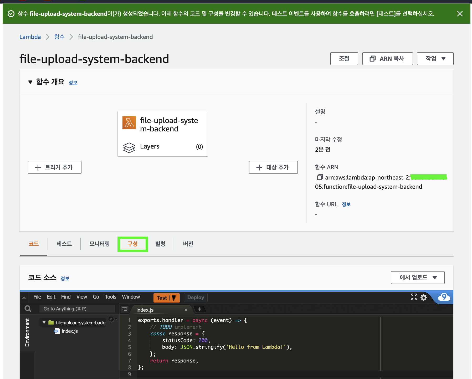 ํ์ผ ์ ๋ก๋ ์น ํ์ด์ง ๊ตฌ์ถ: (3) AWS Lambda ์์ฑ