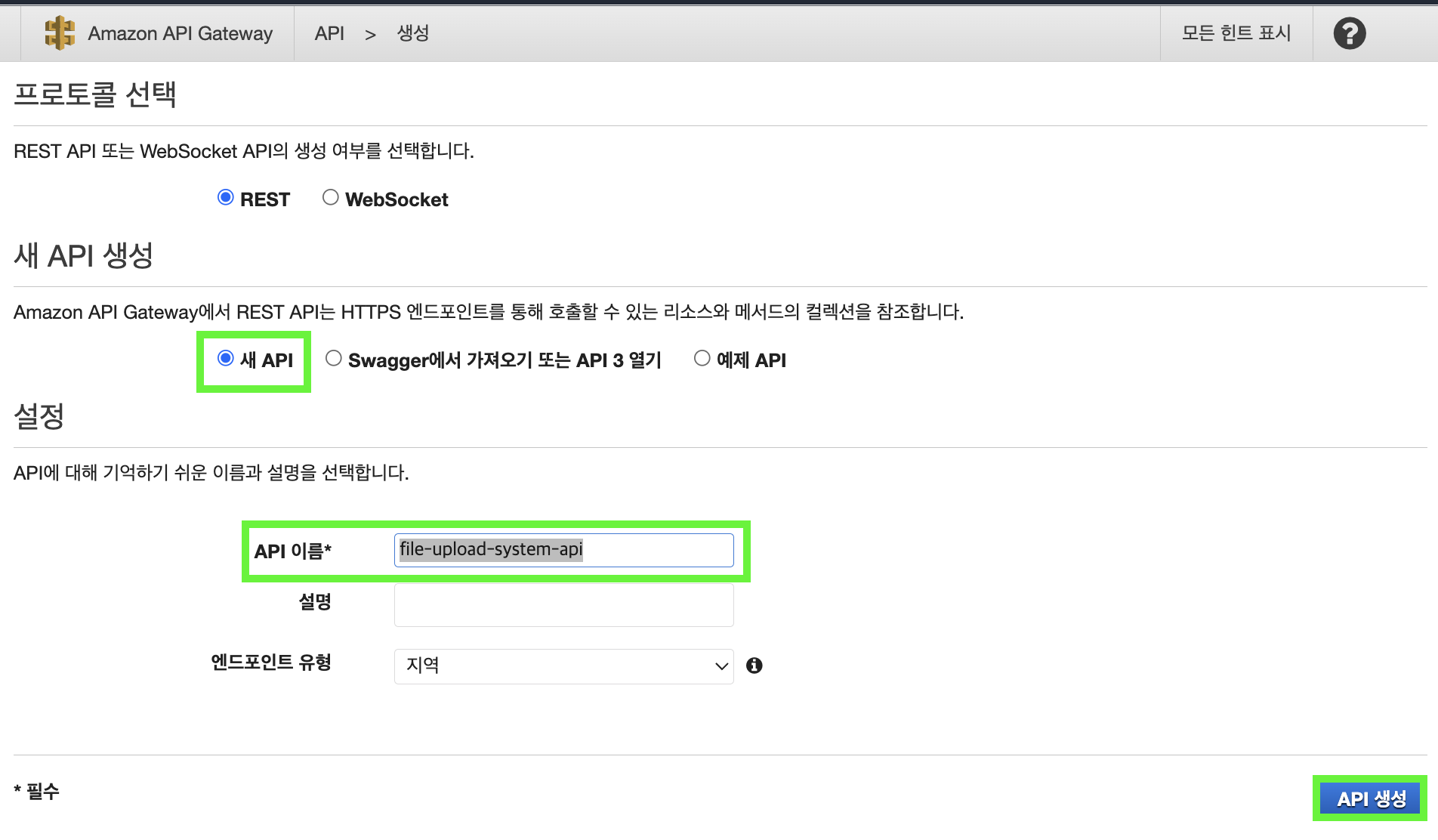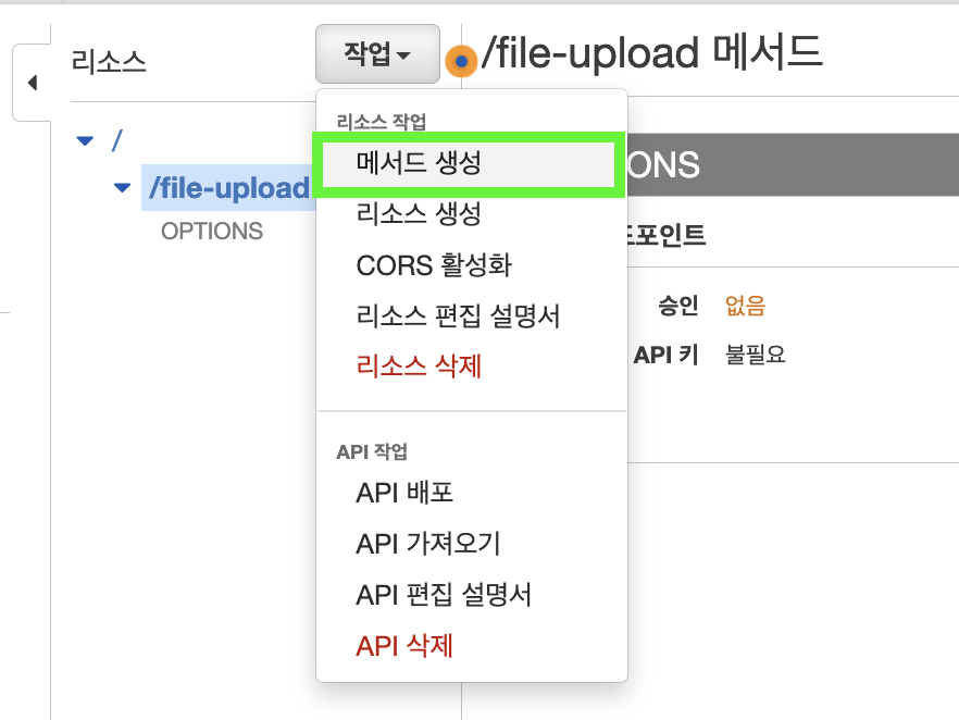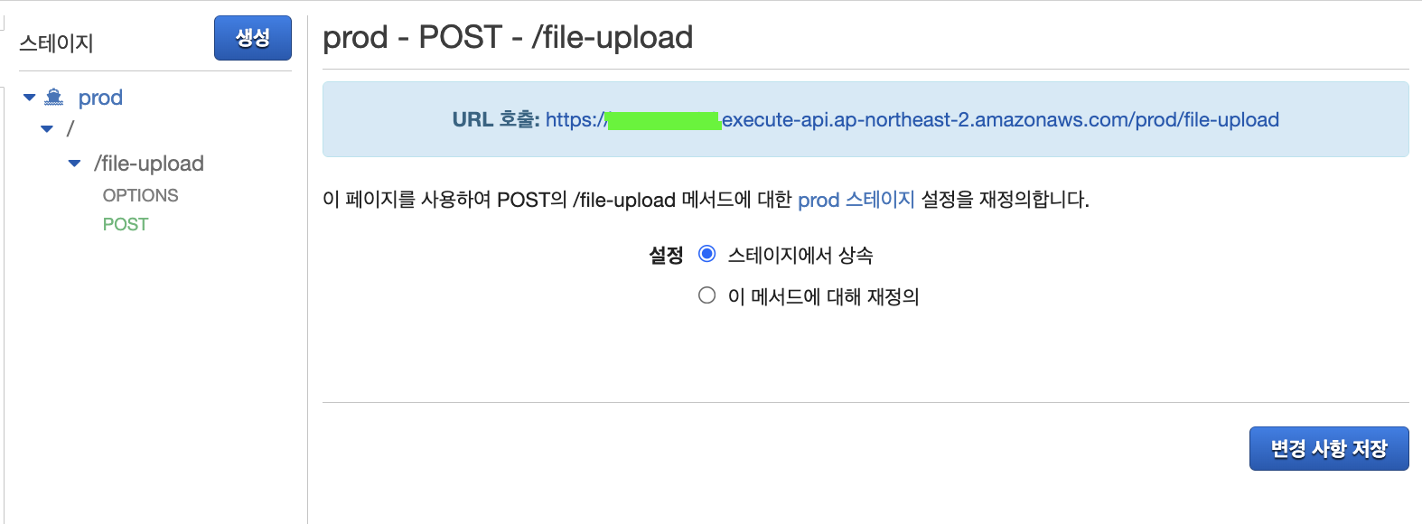 ํ์ผ ์ ๋ก๋ ์น ํ์ด์ง ๊ตฌ์ถ: (5) AWS API Gateway ์์ฑ
