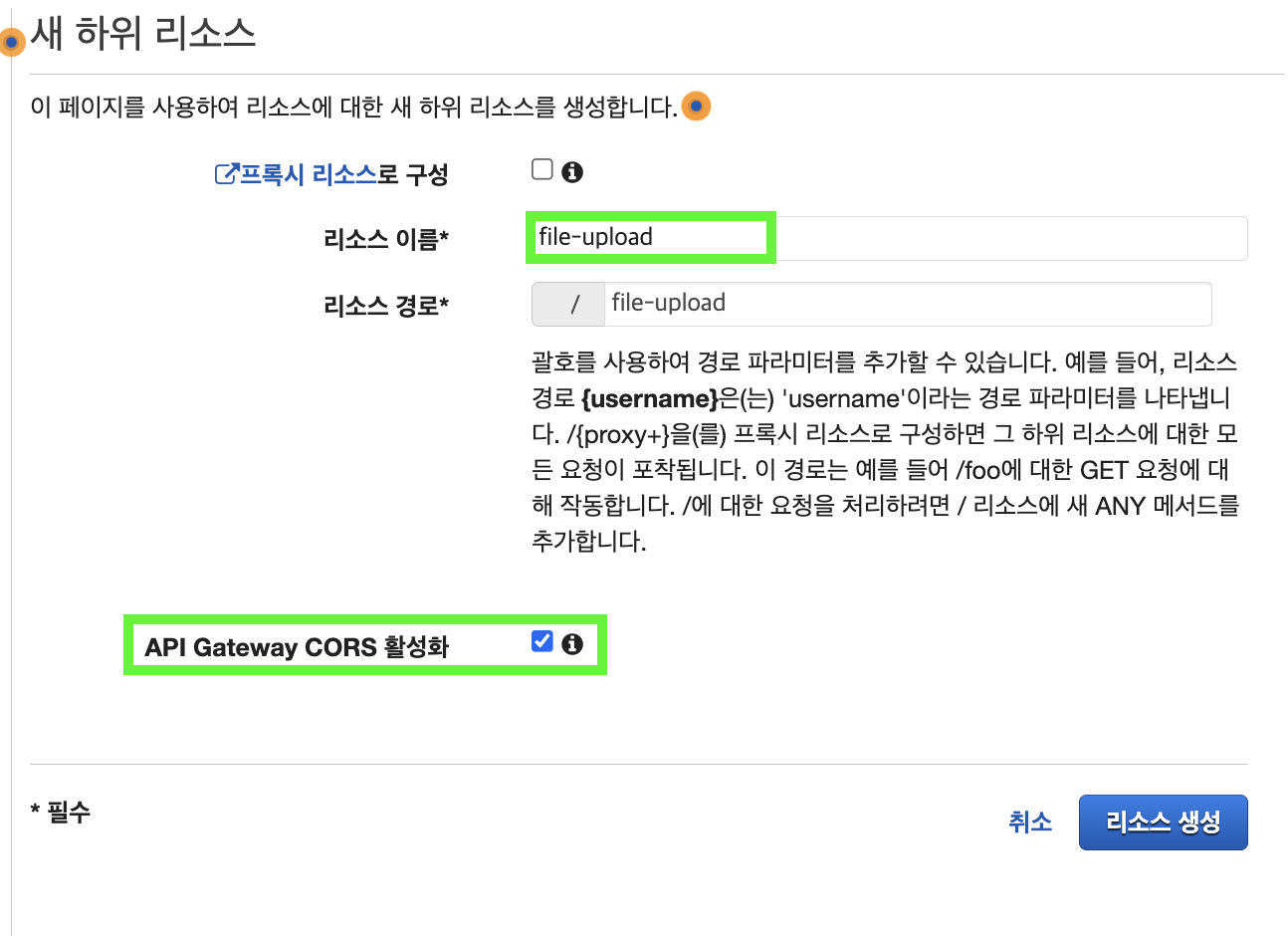 ๋ฆฌ์์ค ๋ค์ด๋ฐํ๊ณ API Gateway CORS ํ์ฑํ๋ฅผ ์ฒดํฌํฉ๋๋ค(๊ทธ๋ฆผ 5).