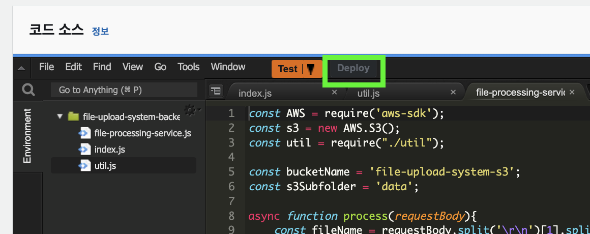 μ΄μ Backendλ₯Ό λ΄λΉνλ λλ€ ν¨μμ νμν μ½λλ λͺ¨λ μμ±νμμ΅λλ€. μ΄μ μλμ κ·Έλ¦Ό 2μ κ°μ΄, Deploy(λ°°ν¬) λ²νΌμ λλ¬μ£ΌμΈμ.