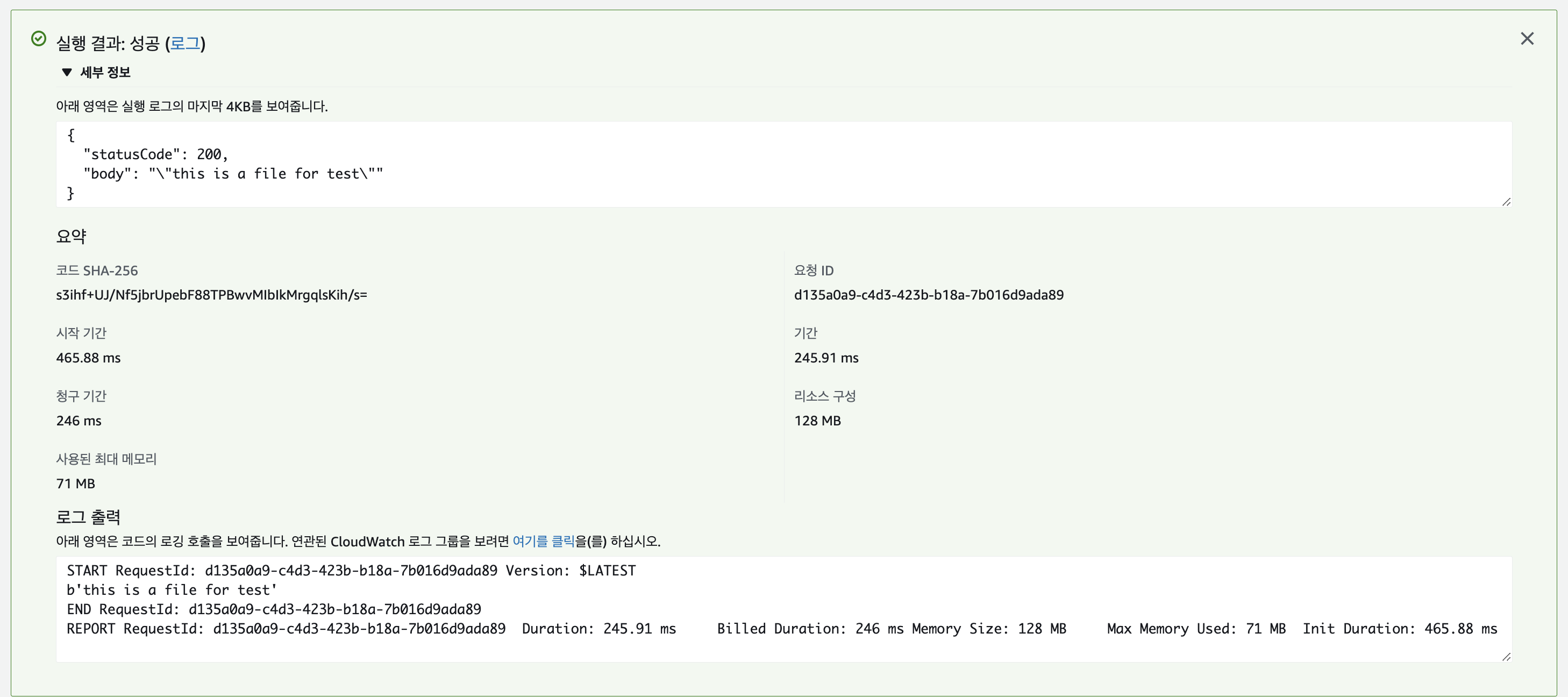 AWS Lambda์์ AWS S3 ํ์ผ ์ฝ์ด์ค๋ ๋ฐฉ๋ฒ ๋ณธ๋ฌธ