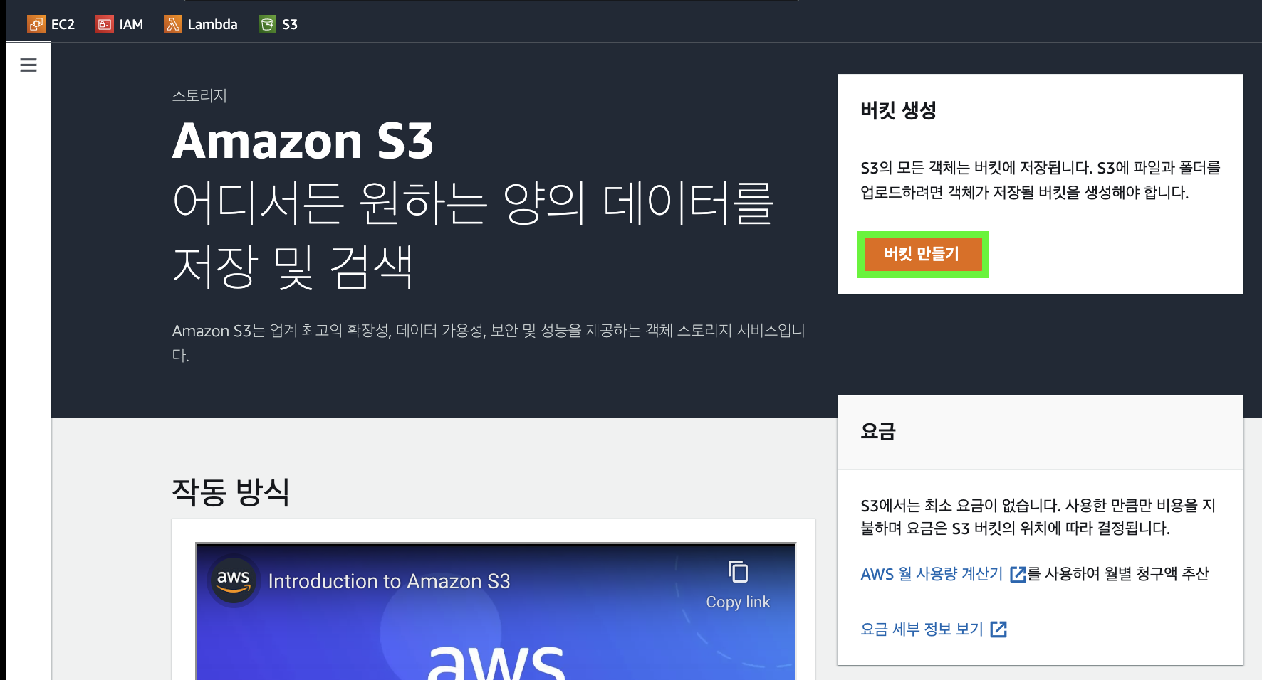 AWS S3 ๊ฐ๋ ์ ์๋์ '๋๋ณด๊ธฐ' ๋ฒํผ์ ํด๋ฆญํด ์ฃผ์ธ์.