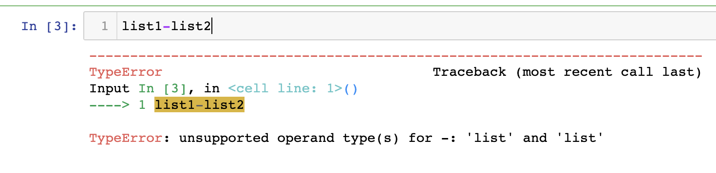 리스트끼리 합집합인 원소 합치기는 덧셈(+)으로 가능합니다. 하지만, 차집합을 위한 뺼셈은 지원하지 않습니다.