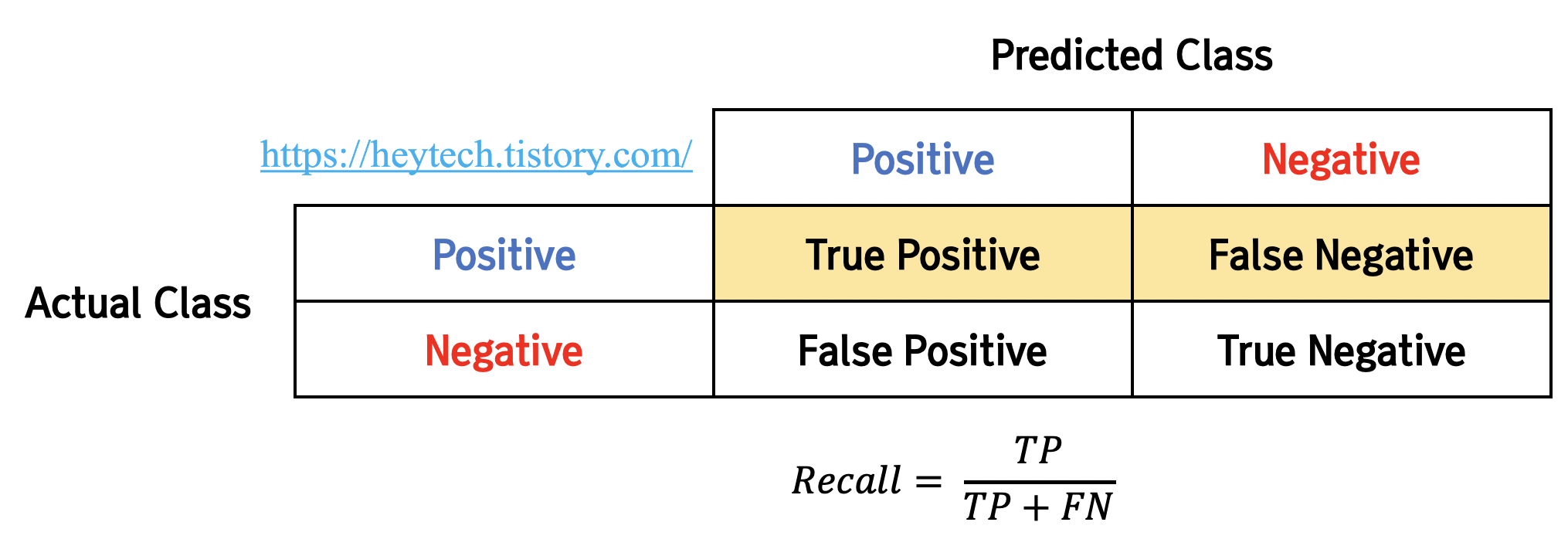 - $$ Recall = \frac{TP}{TP+FN} $$