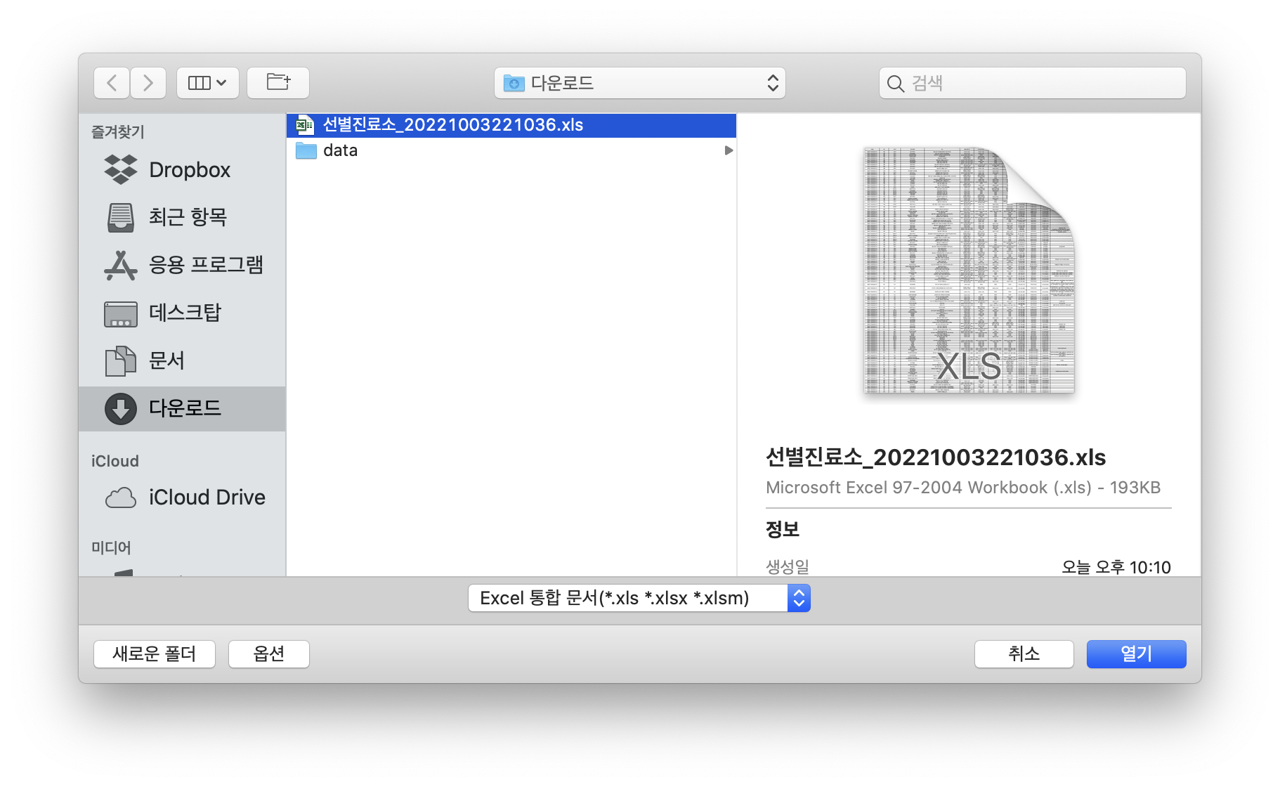코로나19 선별 진료소 현황 데이터를 다운로드합니다.