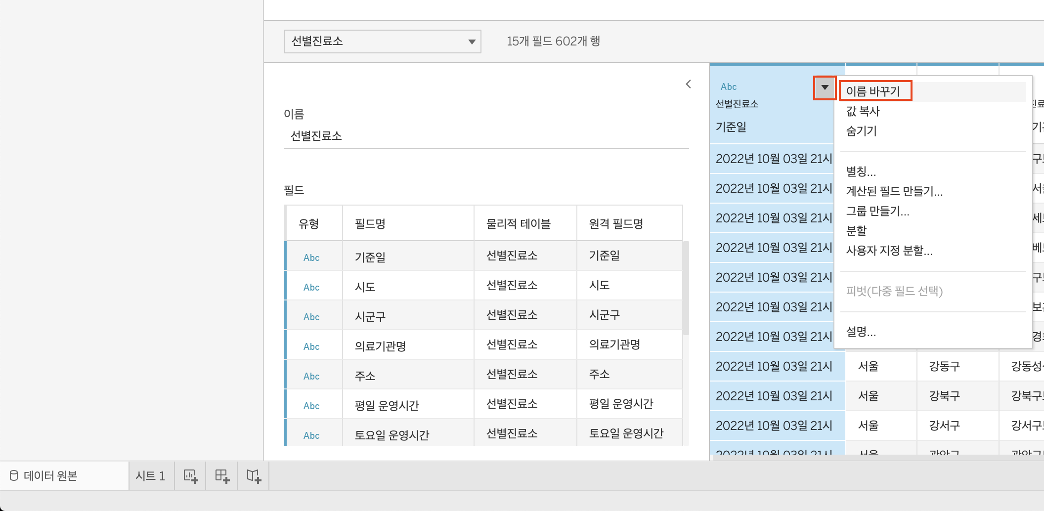 본 포스팅에서는 Tableau Desktop에서 필드명을 변경하는 방법 2가지를 소개합니다.