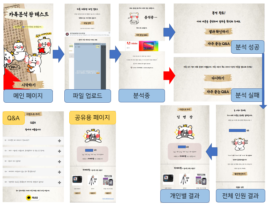 본 포스팅에서는 직접 기획부터 개발까지 주도한 카톡 대화 분석 기반의 성격/취향/성향 분석 웹 서비스 '카톡분석 왕 테스트'를 소개합니다.