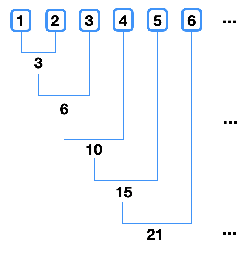 앞서 함수 sum_function 에서 "x + y" 값을 리턴하도록 정의하였기 때문에, 반복 가능한 객체(target)에서 그림 1 과 같이 요소 두 개씩 더한 값을 누적합니다.