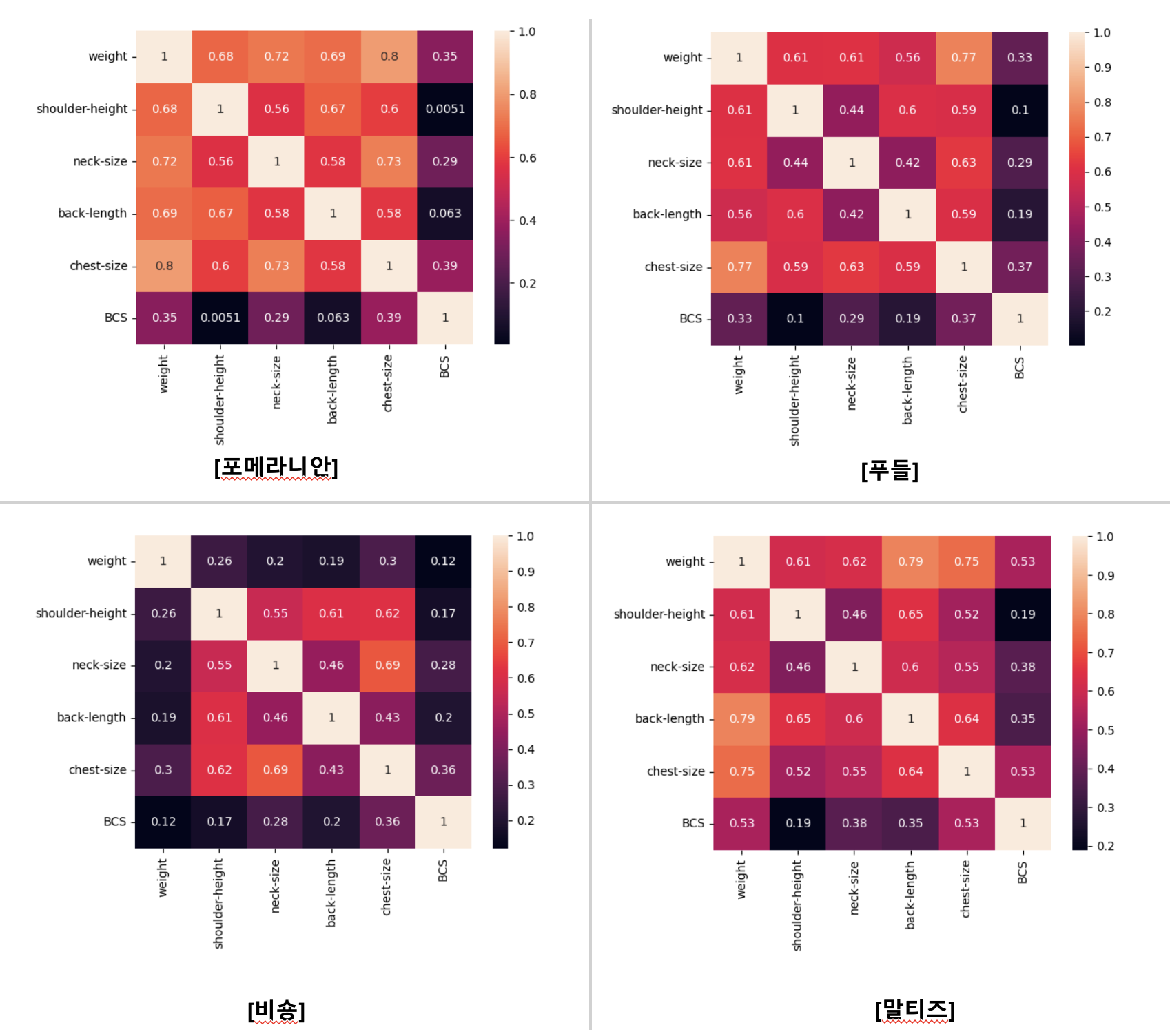 - ๋งํฐ์ฆ๊ฐ ์ ์ฒด ์ง์์ BCS ์ง์ ๊ฐ์ ๊ฐ์ฅ ๋์ ์๊ด๊ด๊ณ๋ฅผ ๋ณด์ด๋ฉฐ ๊ณตํต์ ์ผ๋ก ๋ชธ๋ฌด๊ฒ์ ๊ฐ์ด๋๋ ๊ฐ ํฐ ์๊ด๊ด๊ณ๋ฅผ ๋ณด์ ๋๋ค.
