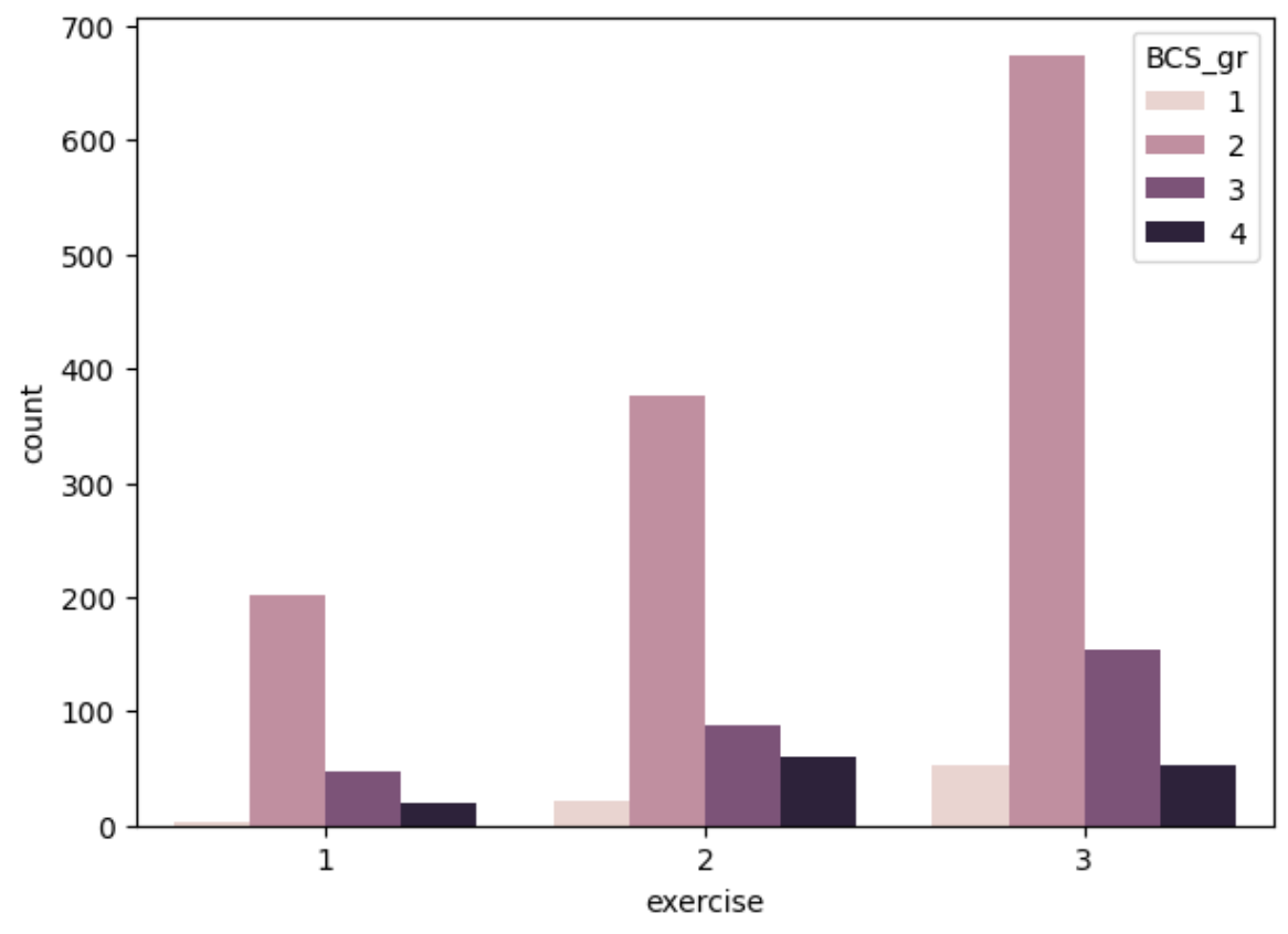 ๋ณธ์กฐ์ฌ์์ 9์ ์ฒ๋๋ก ์กฐ์ฌํ์์ผ๋, ์ผ๋ฐํํ๊ธฐ ์ํด 4์ ์ฒ๋(Too Thin/IDEAL/Above IDEAL/Overweight+obese)๋ก ์ฌ๋ถ๋ฅํ์ฌ ์ดํด๋ณด์์ต๋๋ค.
