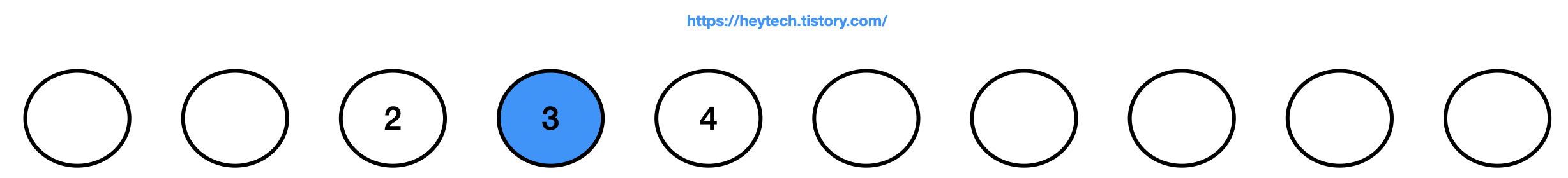6) 이제 좌측에서 우측 방향으로 찾은 데이터 4와 우측에서 좌측 방향으로 찾은 데이터 2 간의 위치가 서로 엇갈린 것을 확인하실 수 있습니다. 분할을 위해 피벗보다 작은 값인 2를 현재 피벗인 3과 위치를 변경합니다.