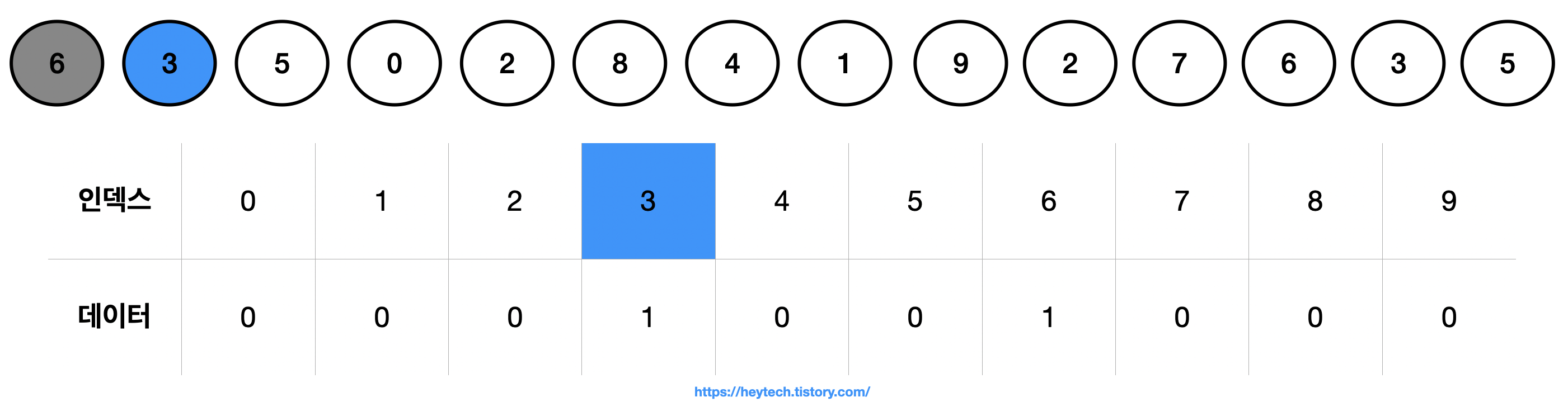 (3) 그다음으로 데이터 3과 인덱스 3에 해당하는 데이터를 1 추가해 줍니다.