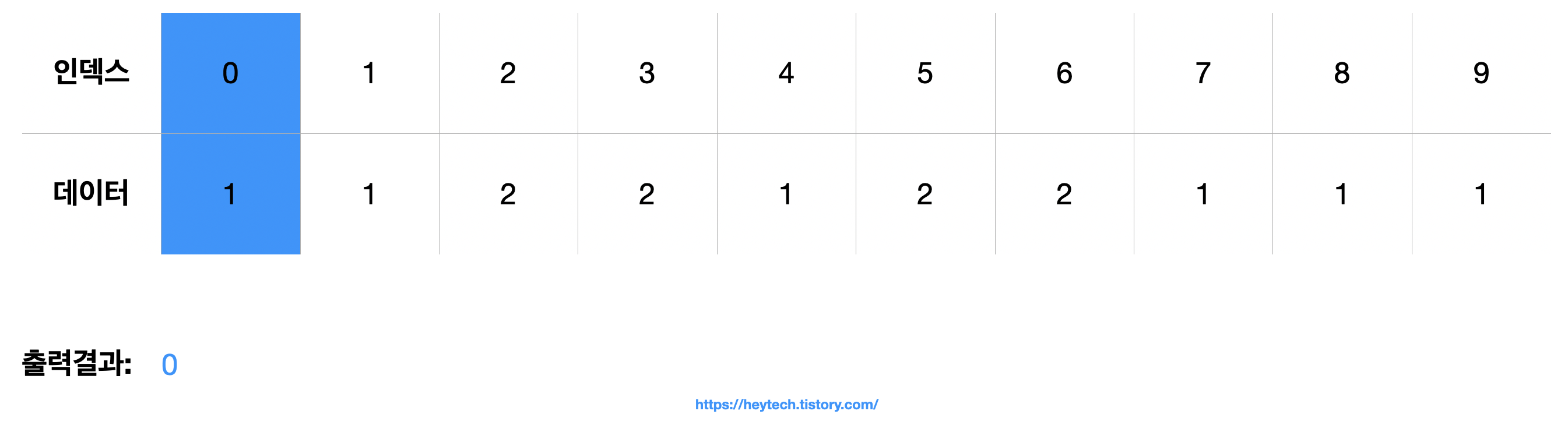 여기서 편의상 현재 비교하는 데이터를 파란색으로 표현하고 비교가 끝난 값은 회색으로 표현하겠습니다.