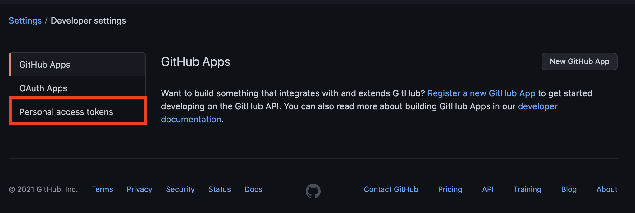 3) 좌측 사이드 바에서 Personal access tokens 클릭(cf. 그림 4)