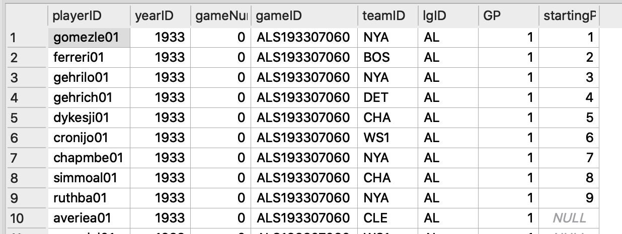 올스타에 선정된 선수 정보는 AllstarFull 테이블(see Table 2 )에 playerID 별로 주어져 있습니다.