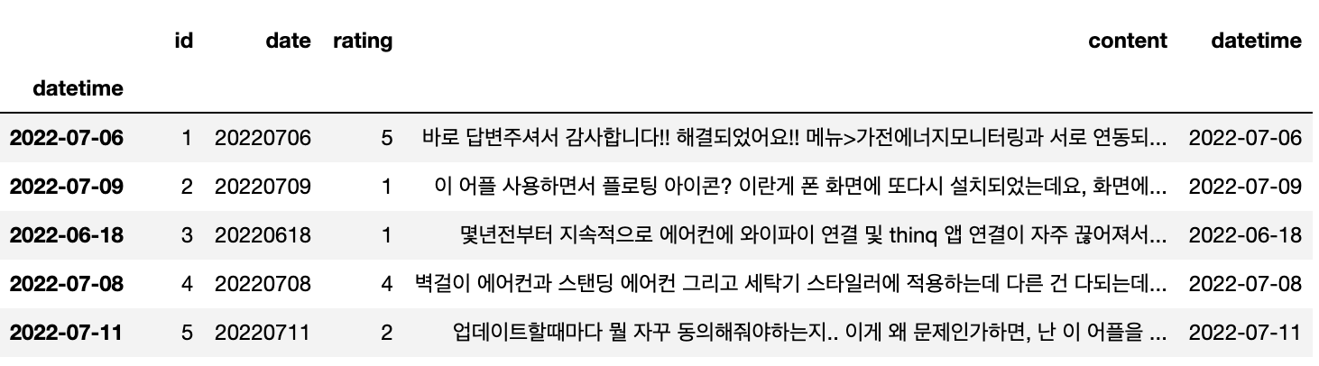 날짜 데이터 기준으로 인덱스를 설정합니다.