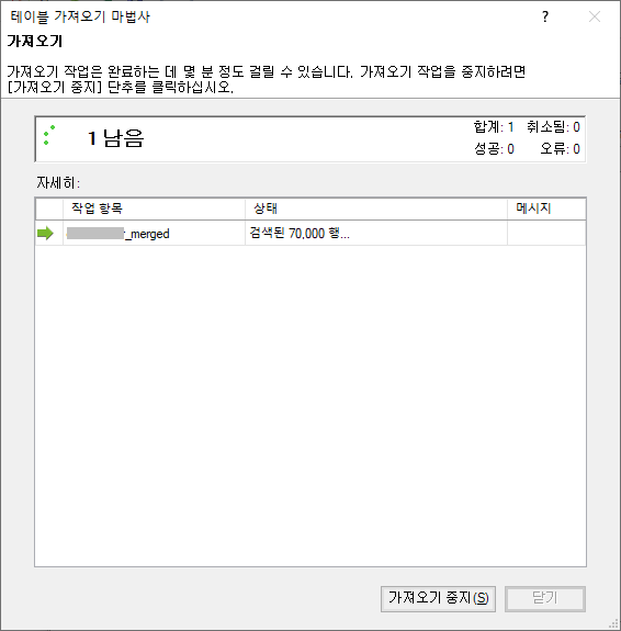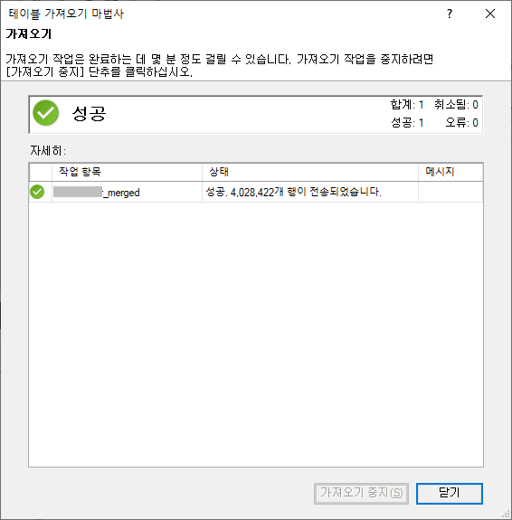 어느 정도 시간이 지나면, 아래의 그림 20처럼, 데이터가 모두 로드됩니다. '닫기' 버튼을 클릭합니다.